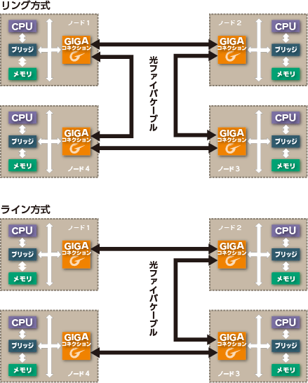 In addition, in the conventional GiGA CHANNEL series, even if one link is broken, all node data transfer can not be performed, but in the case of GiGA CONNECTION products, data transfer is possible between linked nodes.